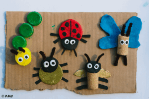 • Coccinelle : Peindre un bouchon en rouge et ajouter des points noirs. Coller sur un cercle de carton noir pour les pattes.