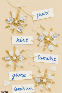 • Entre chaque flocon, suspendre une étiquette avec un mot doux :