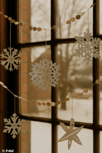 On peut ajouter des touches de couleur, des paillettes, ou écrire un mot doux au centre. Les flocons peuvent être suspendus, collés sur une fenêtre ou intégrés à une guirlande.