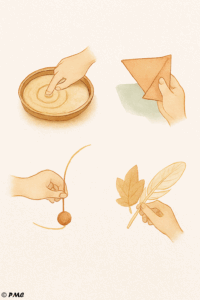 Objectif : affiner la motricité fine, cultiver la lenteur et éveiller l’imaginaire à travers des gestes simples accompagnés de mots doux.