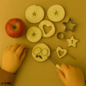 • Retirer les pépins et découper des formes si souhaité (cœur, étoile, rond…).